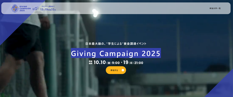 学生による資金調達イベント「Giving Campaign 2025」が全国110大学で同時開催、文部科学省の後援が決定しました