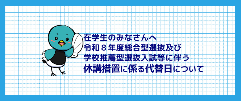 在学生のみなさんへ。令和8年度総合型選抜及び学校推薦型選抜入試等に伴う休講措置に係る代替日について