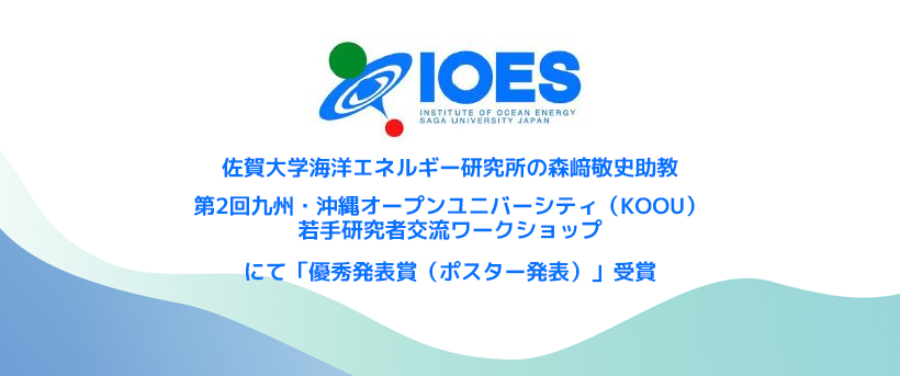 佐賀大学海洋エネルギー研究所の森﨑敬史助教「第2回九州・沖縄オープンユニバーシティ(KOOU)若手研究者交流ワークショップ」にて「優秀発表賞(ポスター発表)」受賞