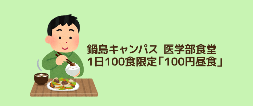 在学生のみなさんへ。佐賀大学鍋島キャンパスにて「100円昼食」開催のお知らせ