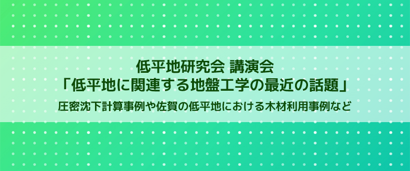 佐賀大学理工学部と連携する低平地研究会より、講演会「低平地に関連する地盤工学の最近の話題」開催のお知らせです。今回は、株式会社ワイビーエム 眞崎照吉氏、木材利用研究会(佐賀) 福岡 仁氏をお招きし、圧密沈下計算事例や佐賀の低平地における木材利用事例などについてご講演いただきます。詳しい内容やお申し込みについては下記をご覧ください。