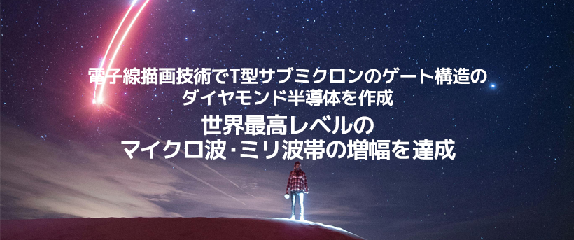 電子線描画技術でT型サブミクロンのゲート構造のダイヤモンド半導体を 作成し、世界最高レベルのマイクロ波・ミリ波帯の増幅を達成