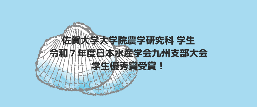 佐賀大学大学院農学研究科の学生が「令和7年度日本水産学会九州支部大会」において学生優秀賞を受賞!受賞おめでとうございます。受賞した研究の題目は「二枚貝の貧酸素継続暴露ストレスを評価する新規手法の開発」です。詳しくは下記をご覧ください。