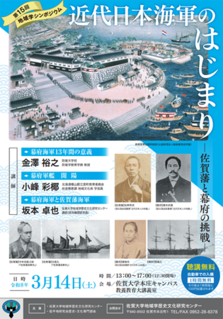 佐賀大学地域学歴史文化研究センターより、第15回地域学シンポジウム「近代日本海軍のはじまり-佐賀藩と幕府の挑戦-」開催のお知らせです。