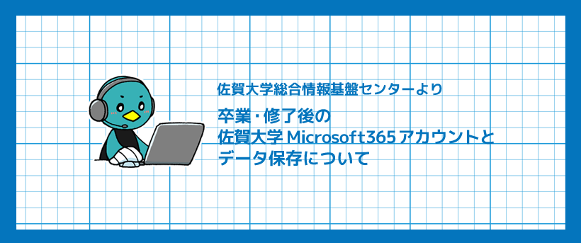 佐賀大学総合情報基盤センターより、卒業・修了後の佐賀大学 Microsoft365 アカウントとデータ保存についてのお知らせです。