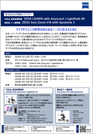 佐賀大学総合分析実験センター 共焦点・超解像顕微鏡・電動型ズーム顕微鏡のセミナーとデモンストレーションを行います