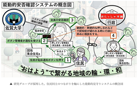 産学連携で開発 高齢者が自ら押すみまもりボタン「いろどり+ボタン」佐賀県営城北団地の30世帯で実証試験開始