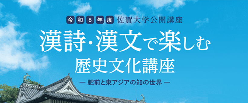 佐賀大学ウェルビーイング創造センターリカレント教育部門より、公開講座 漢詩・漢文で楽しむ歴史文化講座 ― 肥前と東アジアの知の世界 ―受講者募集のお知らせです。かつて漢詩・漢文は、東アジアの人々にとって共通の教養でした。この講座では、初めての方にもわかるように、基礎からじっくり教えます。難しい文法や専門知識は必要ありません。声に出して読み、意味を味わい、背景となる歴史や文化を知る。そんな穏やかな学びの時間をご一緒しませんか?