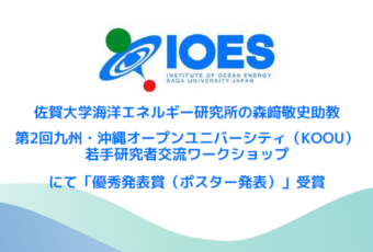 佐賀大学海洋エネルギー研究所の森﨑敬史助教「第2回九州・沖縄オープンユニバーシティ(KOOU)若手研究者交流ワークショップ」にて「優秀発表賞(ポスター発表)」受賞