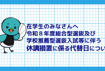 在学生のみなさんへ。令和8年度総合型選抜及び学校推薦型選抜入試等に伴う休講措置に係る代替日について